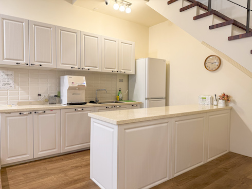 • 親子客廳- 聚會聊天用餐空間,廚房區有加熱副食品的電鍋消毒鍋微波爐奶瓶專用清潔劑奶瓶刷,兒童及餐具等